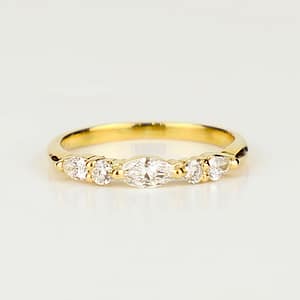 Alliance Layla en or jaune 18 carats, un diamant taille navette au centre , deux diamants taille poire et deux diamants taille brillant, 0,48 cts, pour femme, collection la Joaillerie