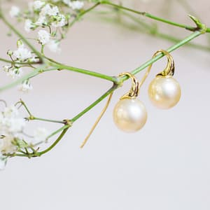 Boucles d’oreilles en or jaune 18 carats et perles de culture des Philippines 10,5 mm, pour femme, collection La Joaillerie.